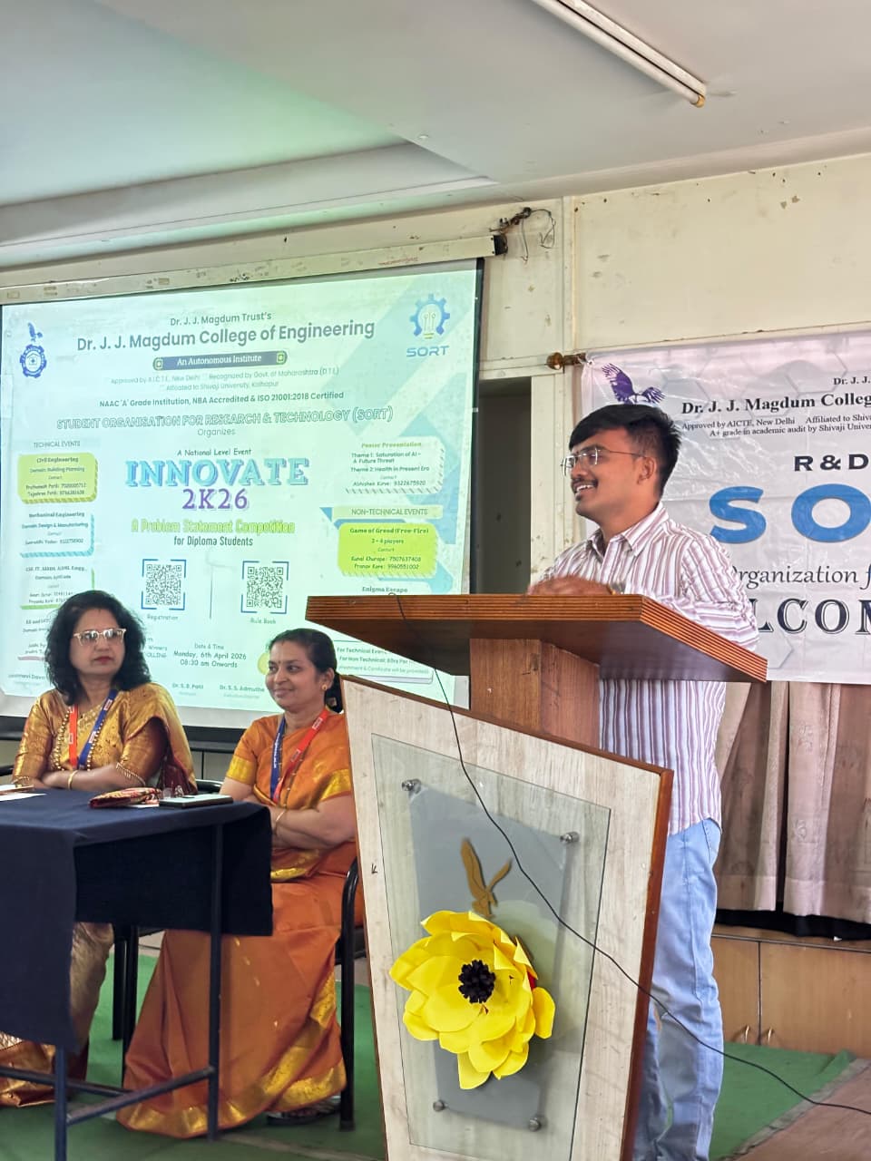 R&D cell and SORT, we thank our management, Hon.Chairman Dr.Veejhayraj Magdum Sir,Vice chairperson Adv.Dr.Sonalee Magdum Madam,Excecutive Director Dr.S.S.Admuthe Sir, Administrator Dr.K.S.Harishanand Sir, Principal Dr.S.B.Patil Madam for their support and throughout guidance to make INNOVATE 2K26 A GRAND SUCCESS